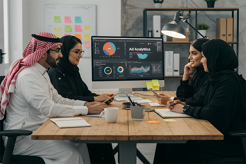 إعلانات تبيع، ما تستهلك ميزانيتك. نختار المنصات الصح ونصيغ الرسالة اللي تجيب نتيجة. يشمل: Meta Ads، TikTok Ads، Google Ads.