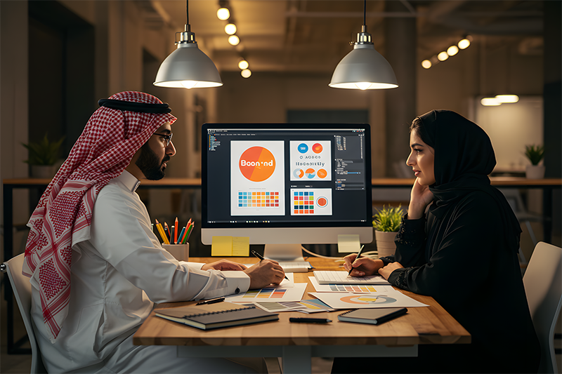 نصمم لك براند يعيش، مو بس شكل ولون. من الشعار إلى كل التفاصيل اللي تخلي الناس تذكرك.